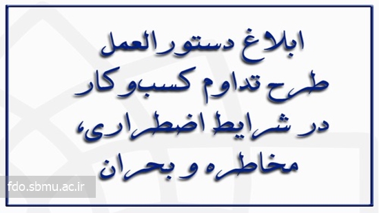 ابلاغ دستورالعمل طرح تداوم کسب و کار در شرایط اضطراری مخاطره و بحران