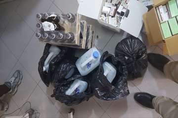 در جریان این بازرسی، حدود ۵۰ لیتر شربت تریاک (اوپیوم) و مقادیر زیادی انواع قرصهای بوپرنورفین و متادون که بهصورت فلهای و خارج از ضوابط تعیینشده نگهداری میشد، شناسایی و کشف شد. بررسیهای اولیه حاکی از آن است که این اقلام با هدف عرضه در بازار آزاد نگهداری میشد.